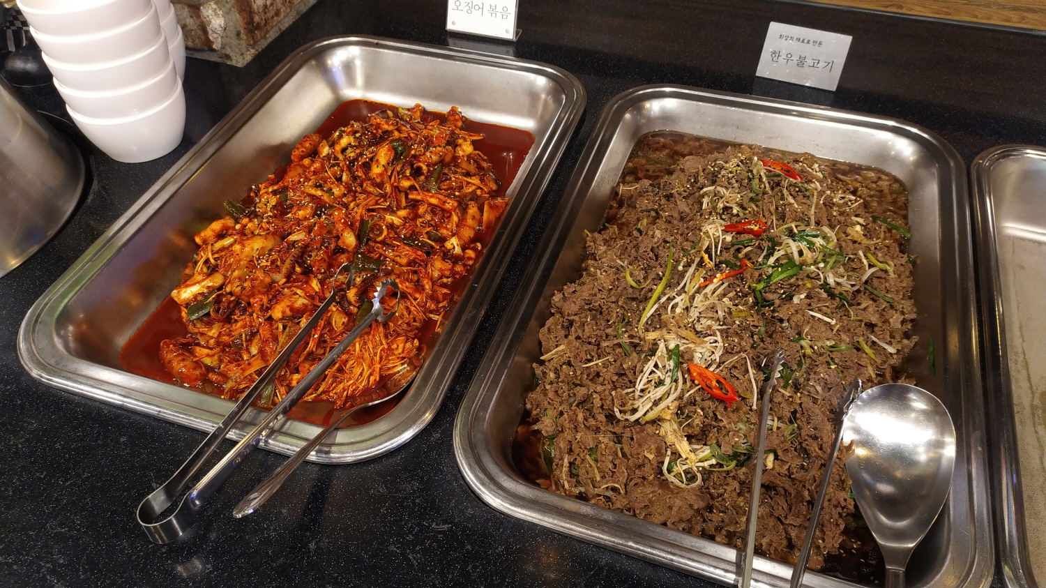 그리고 메인 반찬인데 오징어볶음이 늘었다. 한우불고기와 고추장 불고기는 고정으로 항상 나오는듯하다.