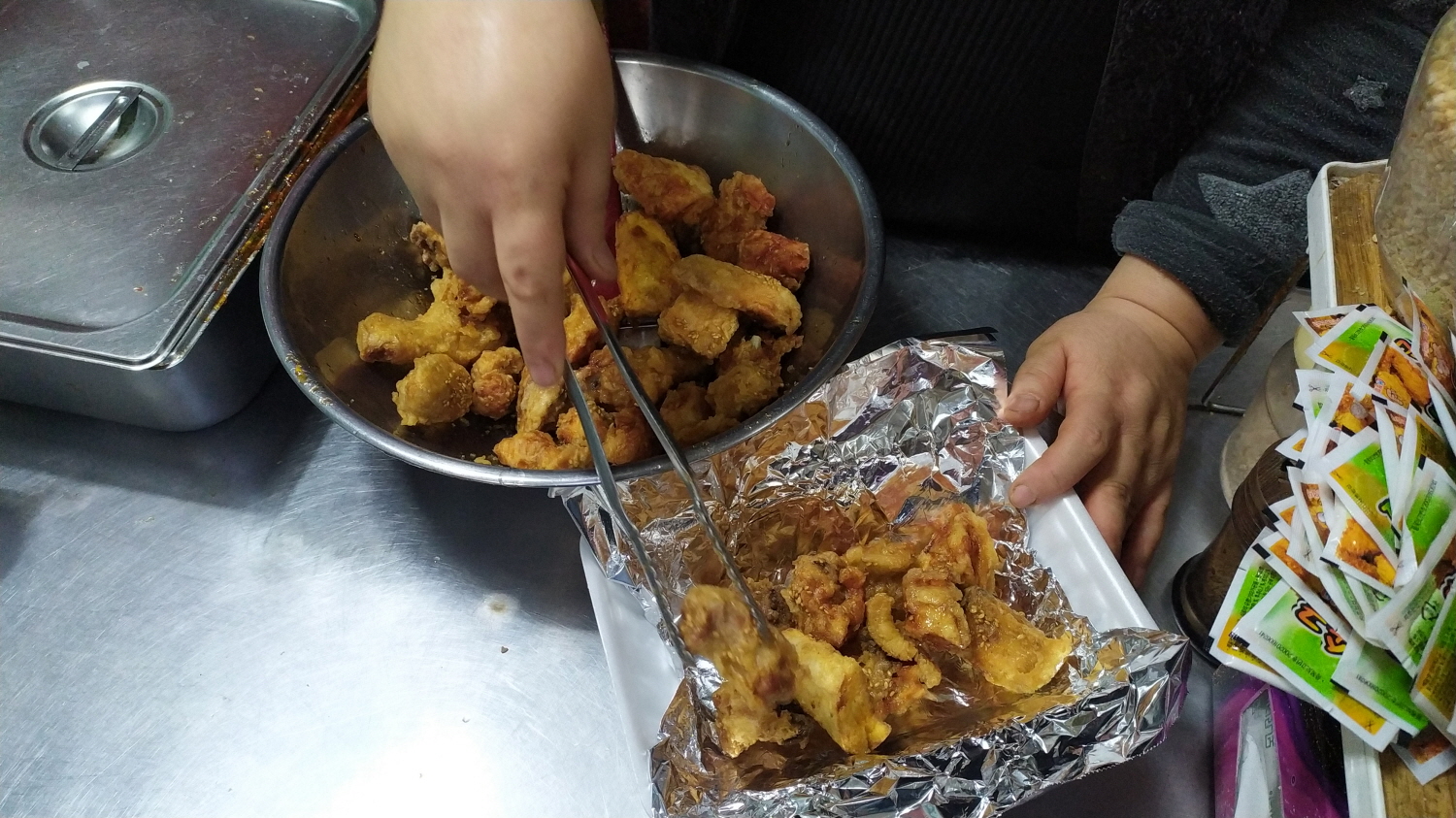 급하게 차량을 주차하고 뛰어들어가 통닭을 주문한다.
