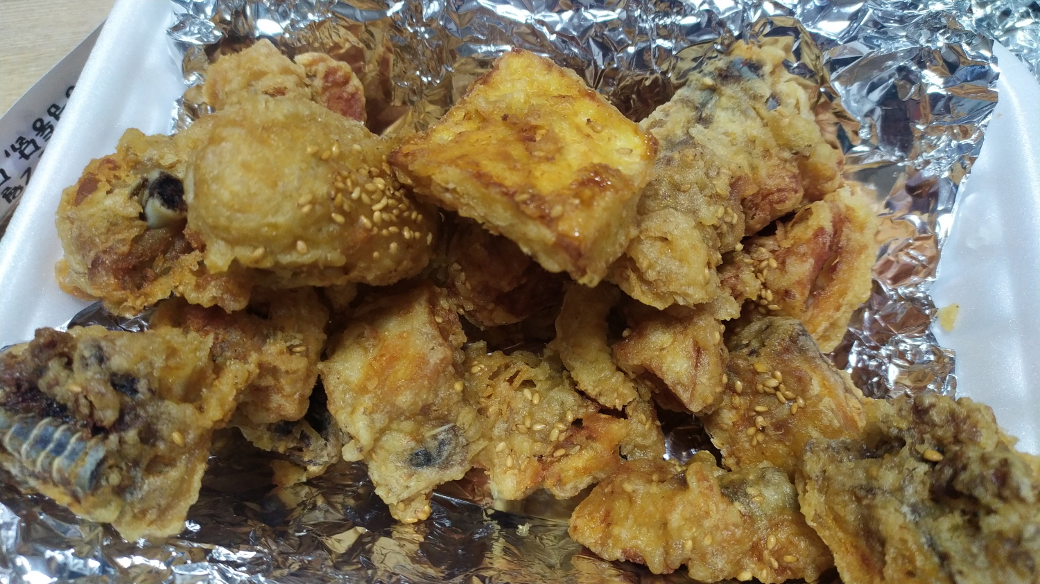 보기보다 많은 양으로 보이지만 먹어보면 너무 맛있어 부족하다. 특히 함께 튀겨낸 고구마! 가격이 비싼 시점이라 더 맛이 있다.