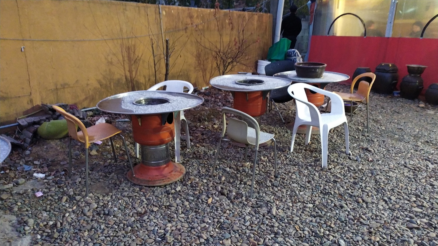여름에는 시원하게 야외테이블에서 막창을 먹을 수 있지만 지금은 주차장으로 사용하고 있다.