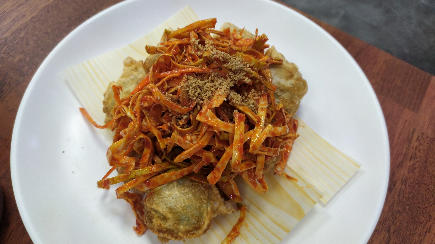 개인적으로 무진장함버지기에서 먹어본 메뉴 중 가장 별로였음. 이유는 말씀드린 대로 비빔만두와 함께 나오는 양배추 소스 때문임. 새콤달콤도 아니고 매운맛이 너무 강함.