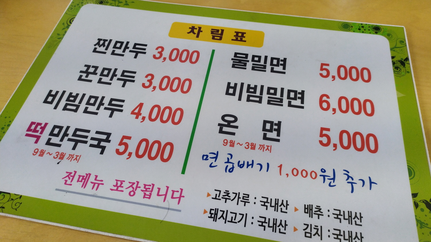 3,000 ~ 6,000원이며, 필자가 오늘 먹어볼 음식은 군만구, 비빔만두, 물밀면, 비빔밀면까지 이며 2인이 먹기에도 많은 양 같지만 맛집을 방문하면 다~ 먹어봐야 하기에 도전!!