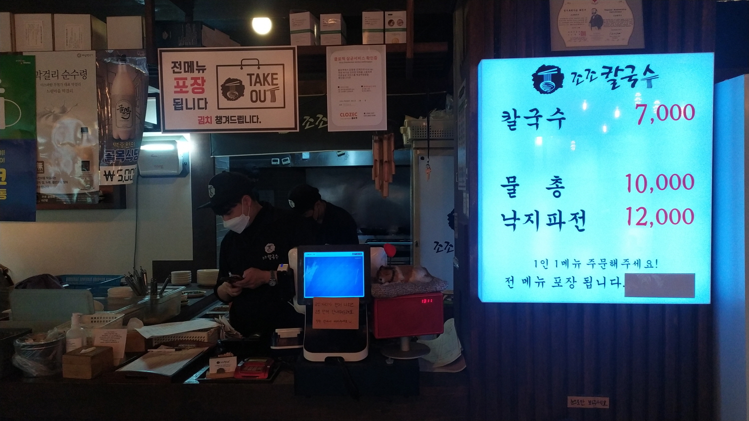 대기명단 작성하고 조조칼국수집을 꼼꼼하게 담아본다. 참고로 대기명단 작성 시 주문할 메뉴까지 기재하는듯하다