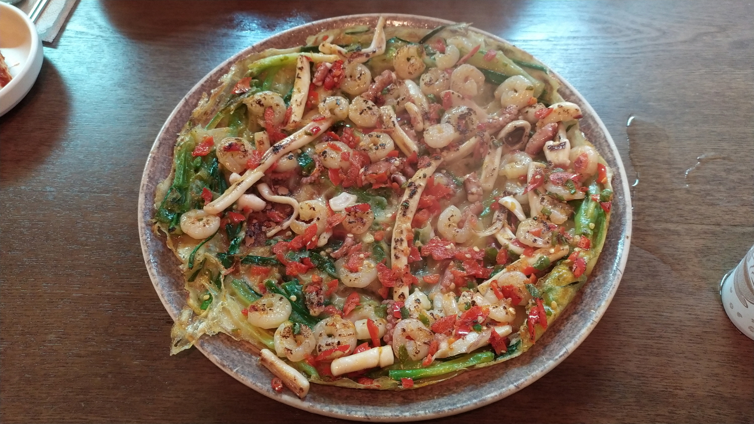 처음엔 파전 가격보고 놀라고 다음은 파전에 들어간 토핑 보고 놀랐다.