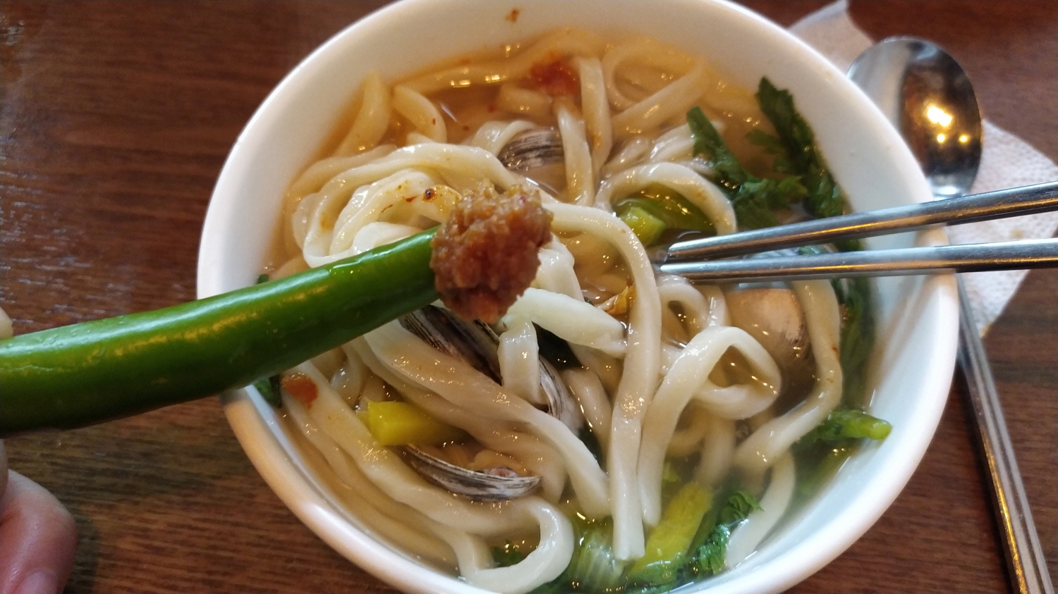 조미료 맛은 일도 없고 그렇다고 해산물의 깊은 맛도 아니지만 깔끔하면서 적절하게 조합된 국물 맛! 신비로울 정도이다.