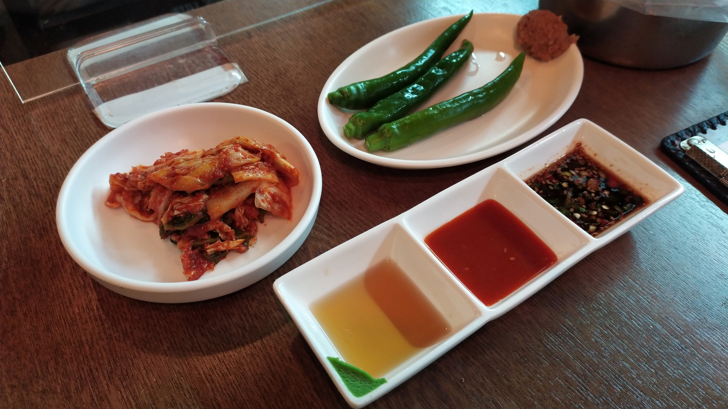 기본 맛은 심심한 맛도 보이지만 찍어 먹을 수 있는 장이 제공되니 충분해 보인다.