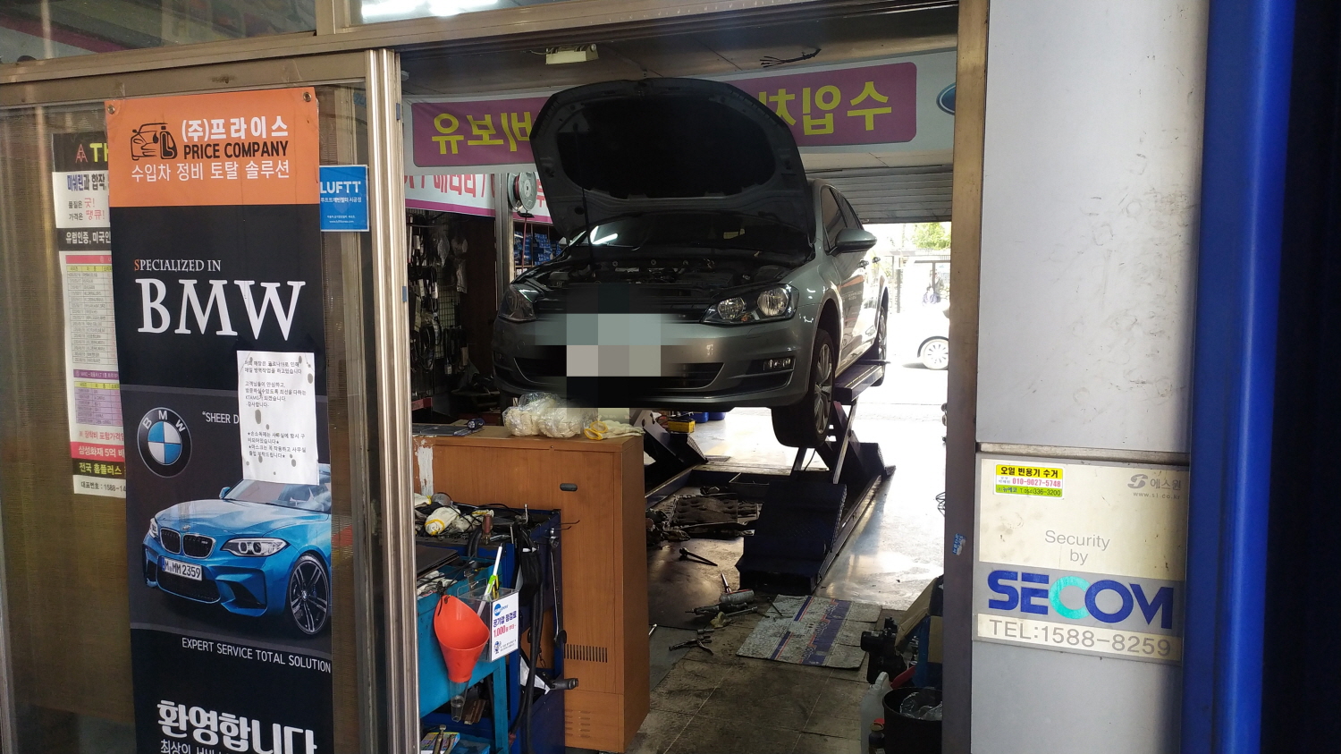 사실 이 업체는 수성구에 있었다. 하지만 어떤 이유로 이 곳? 북구까지 이전하게 되었지만 단골들이 많아서인지 영업에는 크게 지장이 없는듯 보인다. 주말인데 아침부터 많은 수입차들이 아파서 입원을 했다.