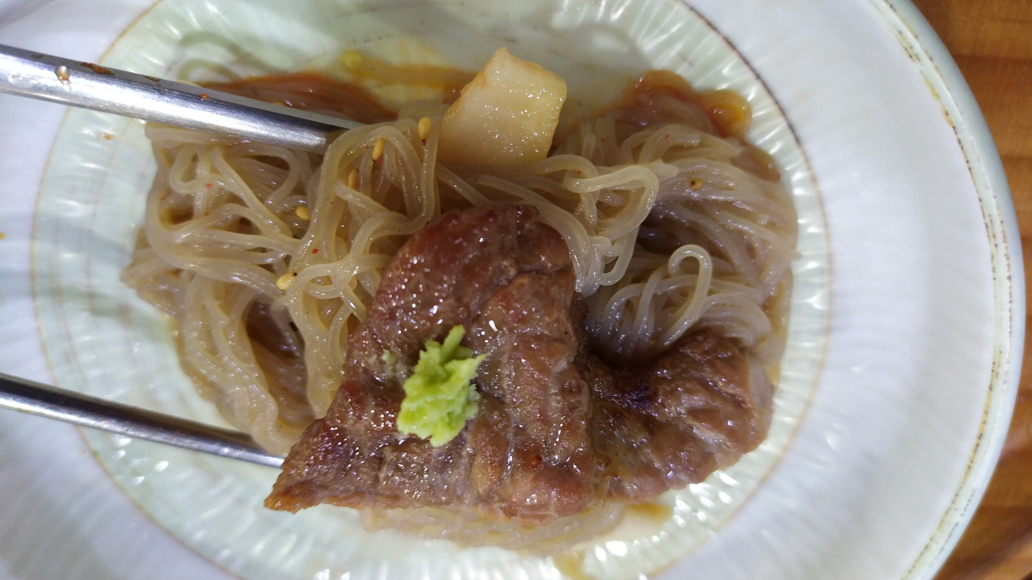 그리고 냉면, 비빔냉면에다 석갈비는 아주 인상적인 맛이다. 궁합은 나름 만족스럽다.