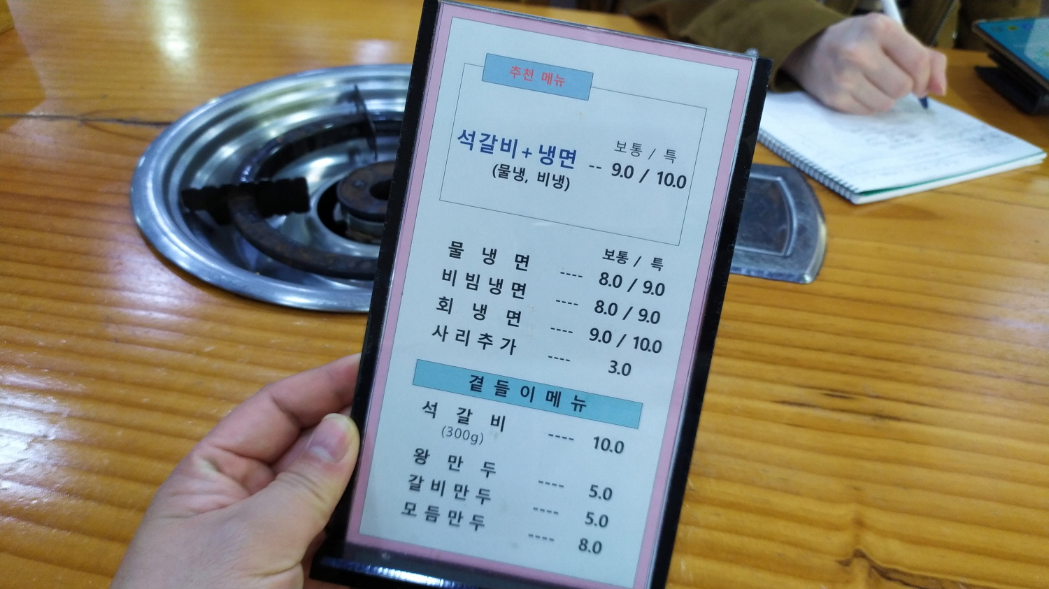 석갈비 + 냉면을 선택하고 2인이라 비냉 + 물냉으로 주문했다. 그리고 1,000원 비싼 "특"으로...