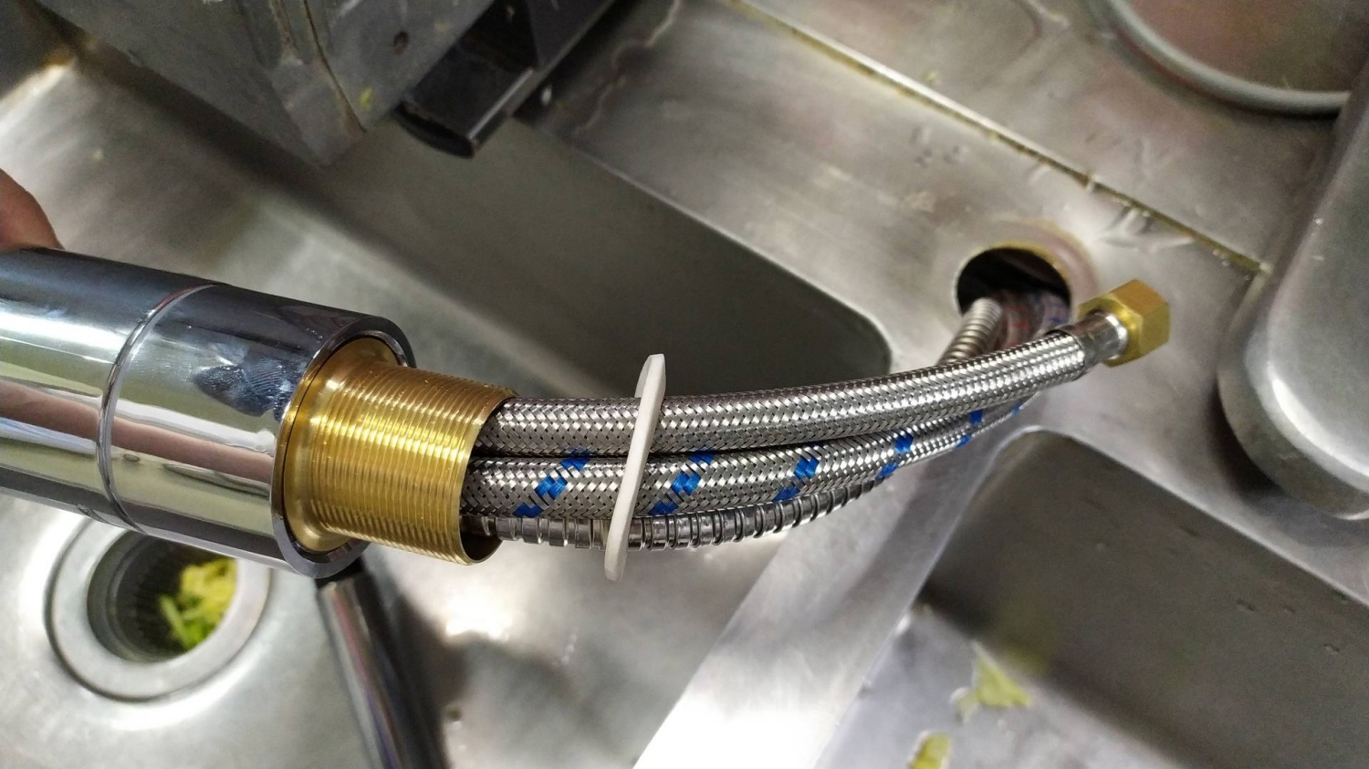 싱크대 하단에 누어서 조금씩 풀다 보니 풀리긴 합니다. 주방이라 바닥에 물이 많아 작업 능률이 가정보다는 많이 떨어지는 건 사실입니다.