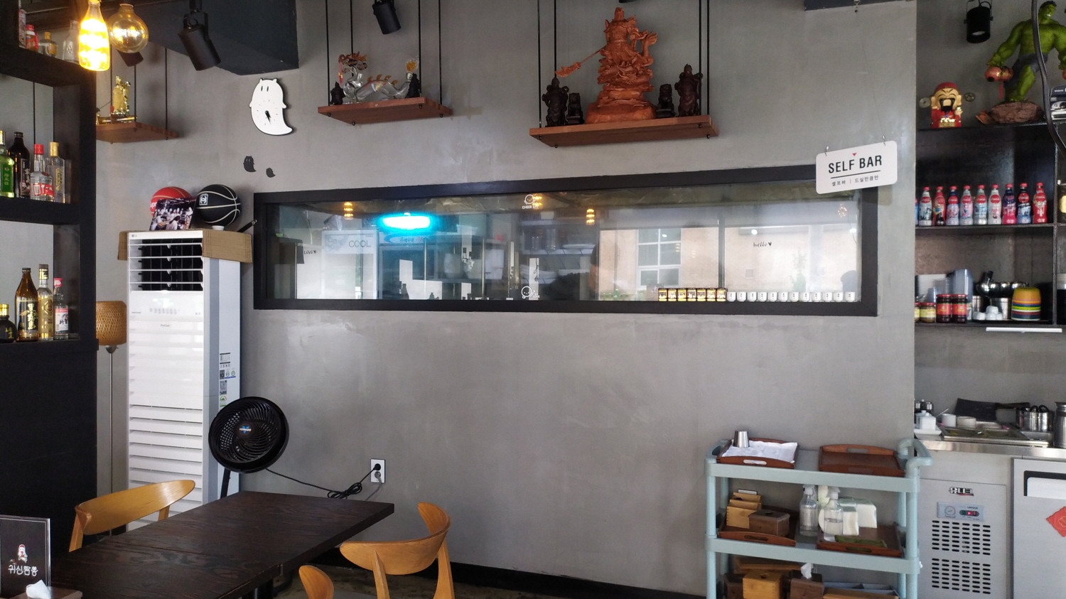 식당에 들어서자마자 주방이 바로 보이는 구조이다. 요리하는 주방장이 보이고 주방장 역시 나를 본다.