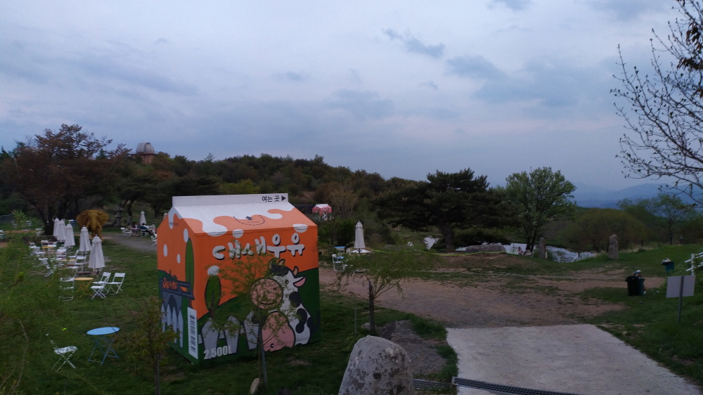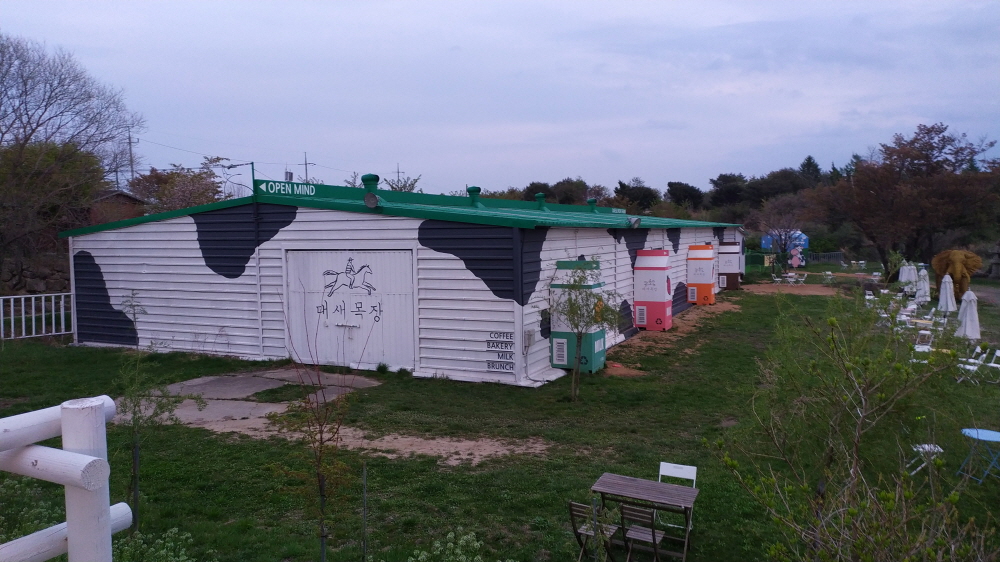 운 좋게 퇴근시간에 방문하여 잠깐 둘러볼 수 있었다. 사실 필자는 오늘 이곳을 방문하기 위해 온 것은 아니다. 지인과 편의점 커피를 한잔씩 구입해서 이 곳만큼 좋은 뷰가 있는 그런 곳을 찾아가기 위해서 가는 길에 우연히 리모델링? 된 카페(대새목장)을 보게 되었다.