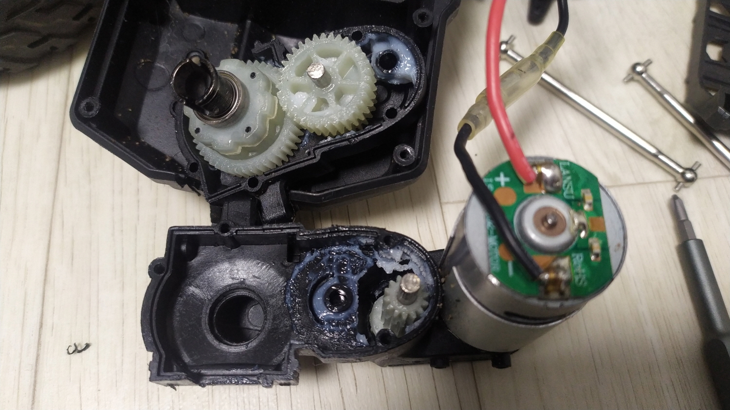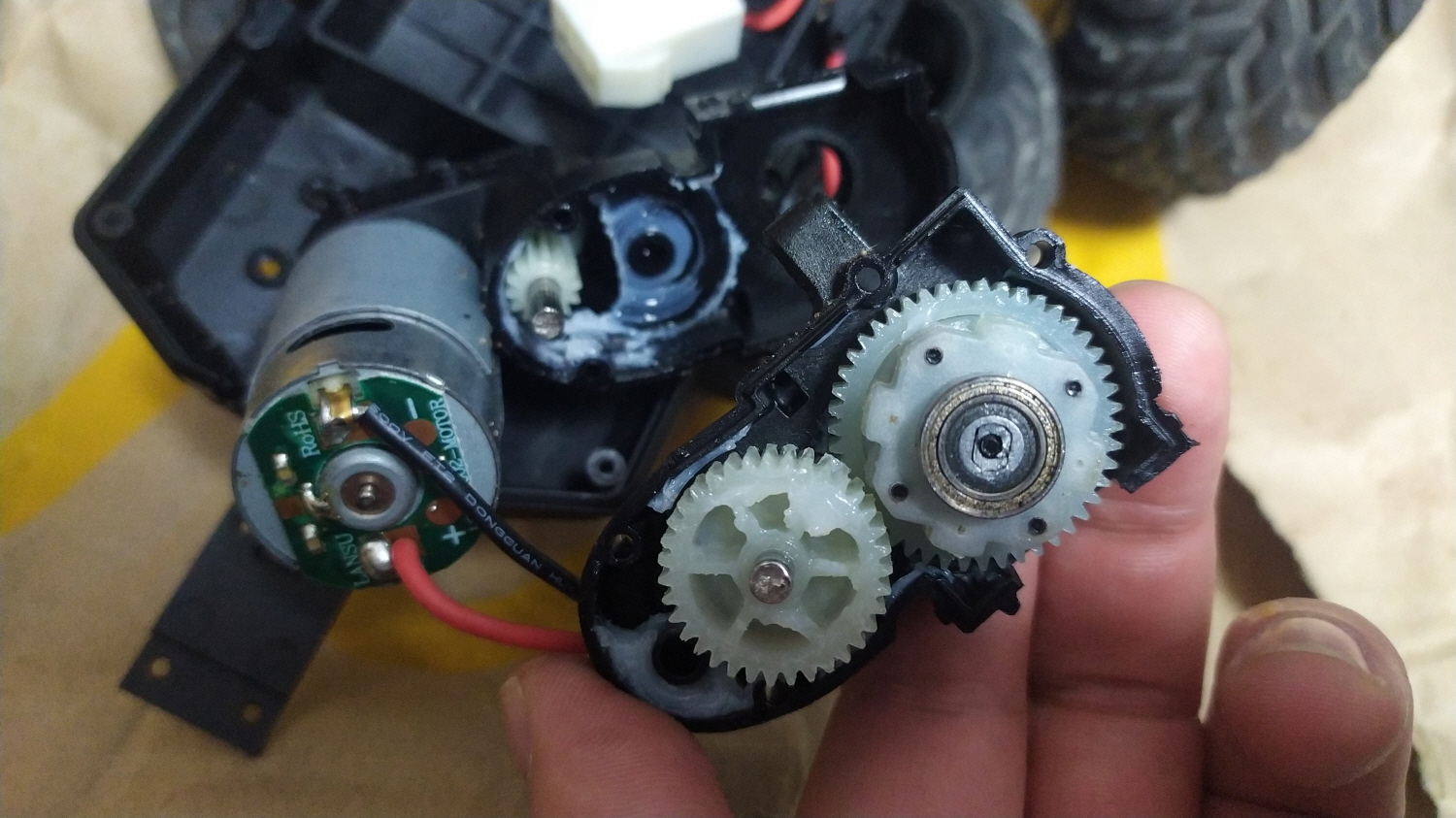 RC카를 분리합니다. 분리방법은 그리 어렵거나 난이도가 높은 부분은 없습니다. 모두 분리하고 모터와 기어가 들어가 있는 박스를 개봉합니다.