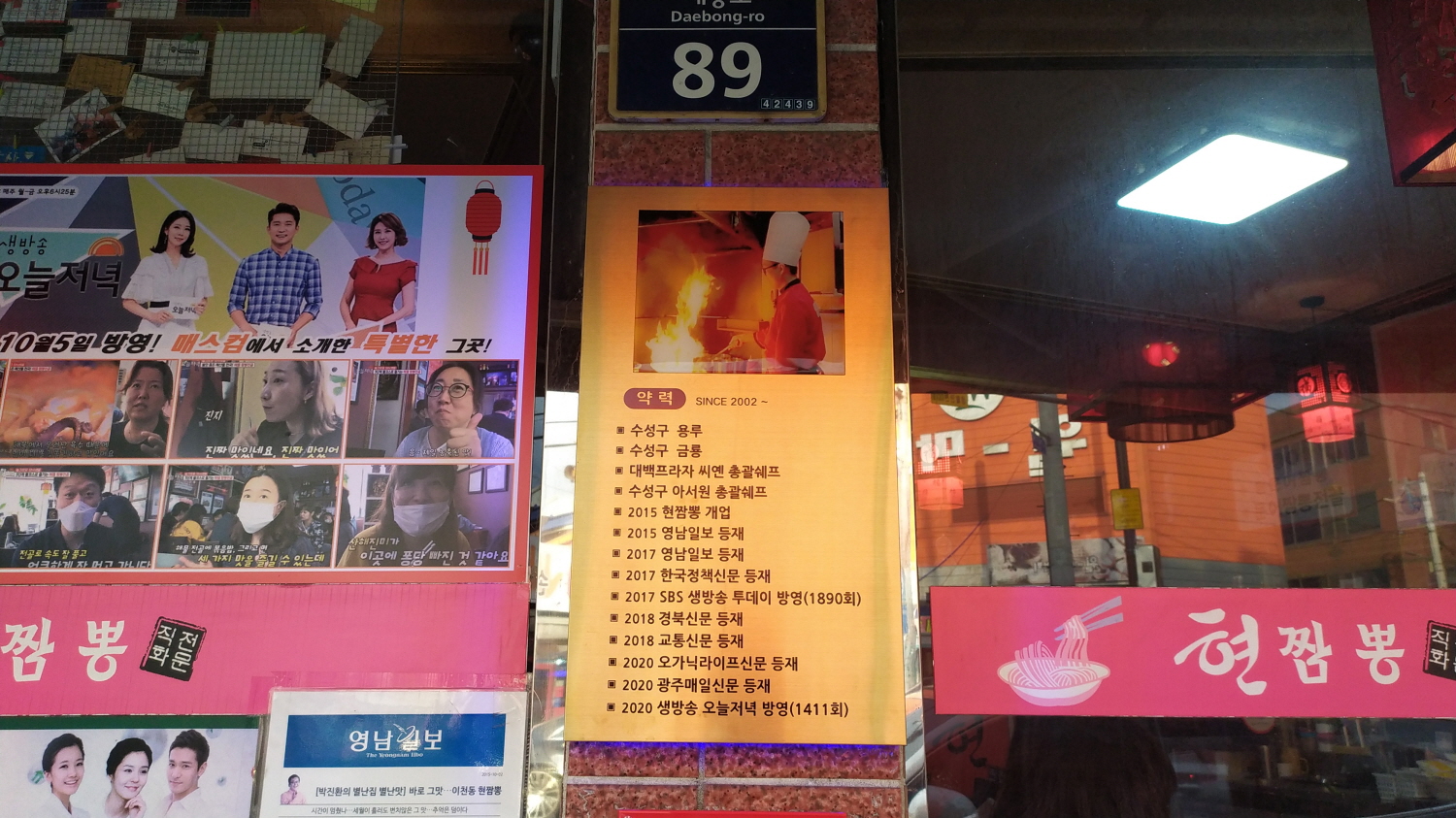 최근 KBS 다큐 김영철의 동네 한 바퀴 "힘이 난다 앞산 동네 - 대구 남구(2020년 12월 26일)" 방송된 대구 짬뽕 맛집으로 주가를 올리고 있는 바로 현짬뽕이다. 찾아보니 이외에도 방송 출연을 많이 한 곳이다. 그리고 생방송 오늘 저녁(2020.10.05) 해물짬뽕 전골, 생방송투데이(17.06.07) 통문어 해물전골 짬뽕으로도 TV 출연한 한 것으로 나온다.