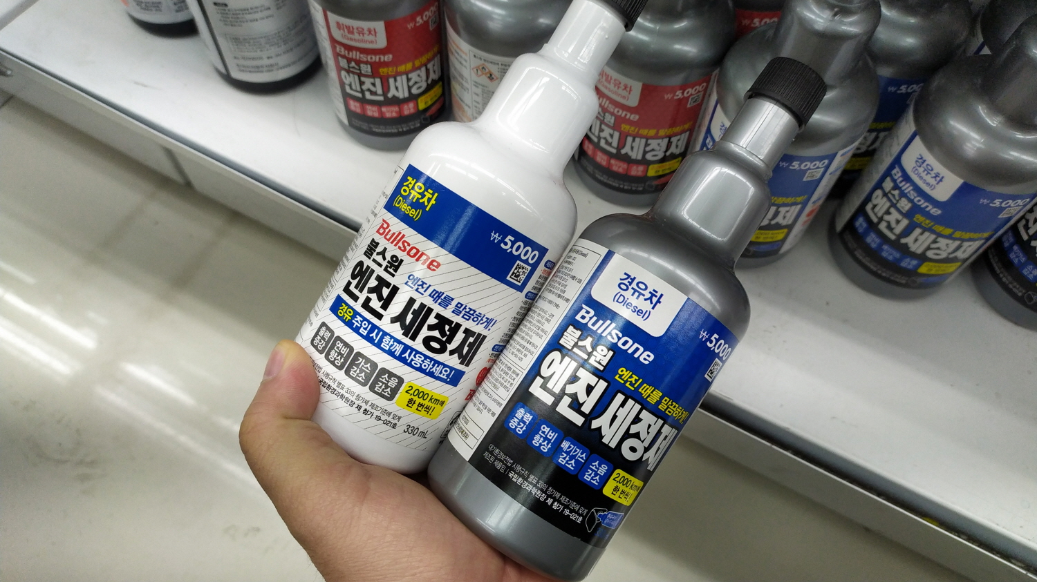 근데 궁금한 점이 생겼다. 불스원 경유차 엔진 세정제가 2가지이다. 최근 필자가 구입한 것은 오른쪽 제품인데... 뭐가~다르지?? 나중에 이 부분도 직원에게 물어보아야겠네요.