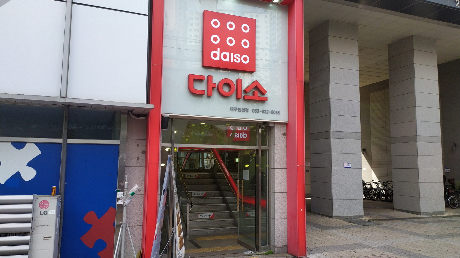 넓은 도로를 지나가면서 진천점 다이소를 담아보는데 앵글에 다~ 담기지가 않네요. 대략적인 규모는 뒤편 아파트로 가늠이 가능하실겁니다. 아마도 대구 최대 규모의 다이소가 아닐까? 생각됩니다.