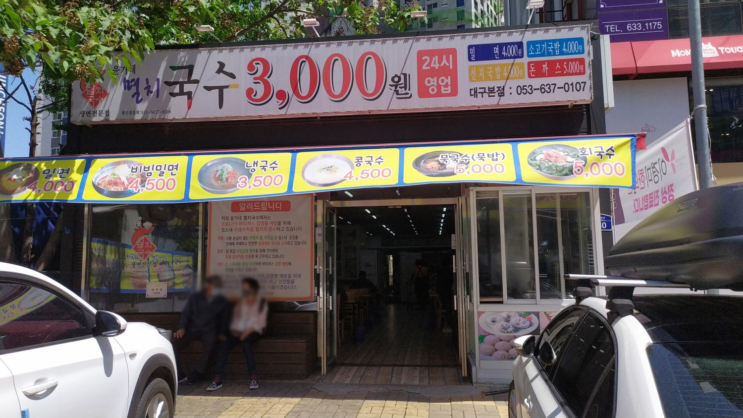 지인의 카톡이 왔다. 동네 인근에 국수가 3,000원이고 24시간 영업을 한다고 한다. 면을 좋아하는 필자가 이 소식을 듣고 지나칠 수는 없지 않나? 그래서 휴일에 방문을 했다.