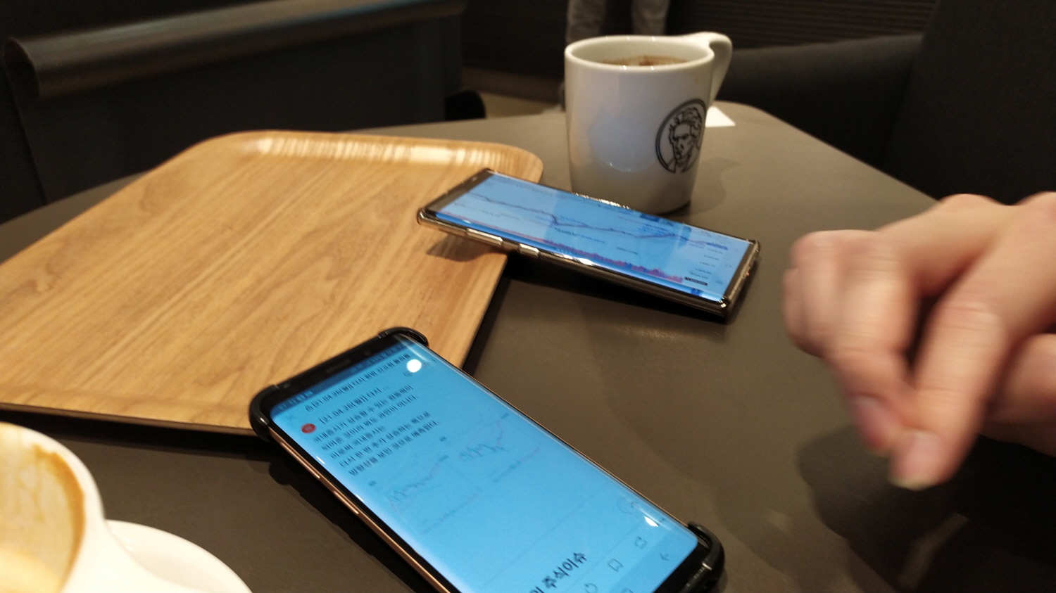 주문한 커피와 카페라테가 나왔네요.