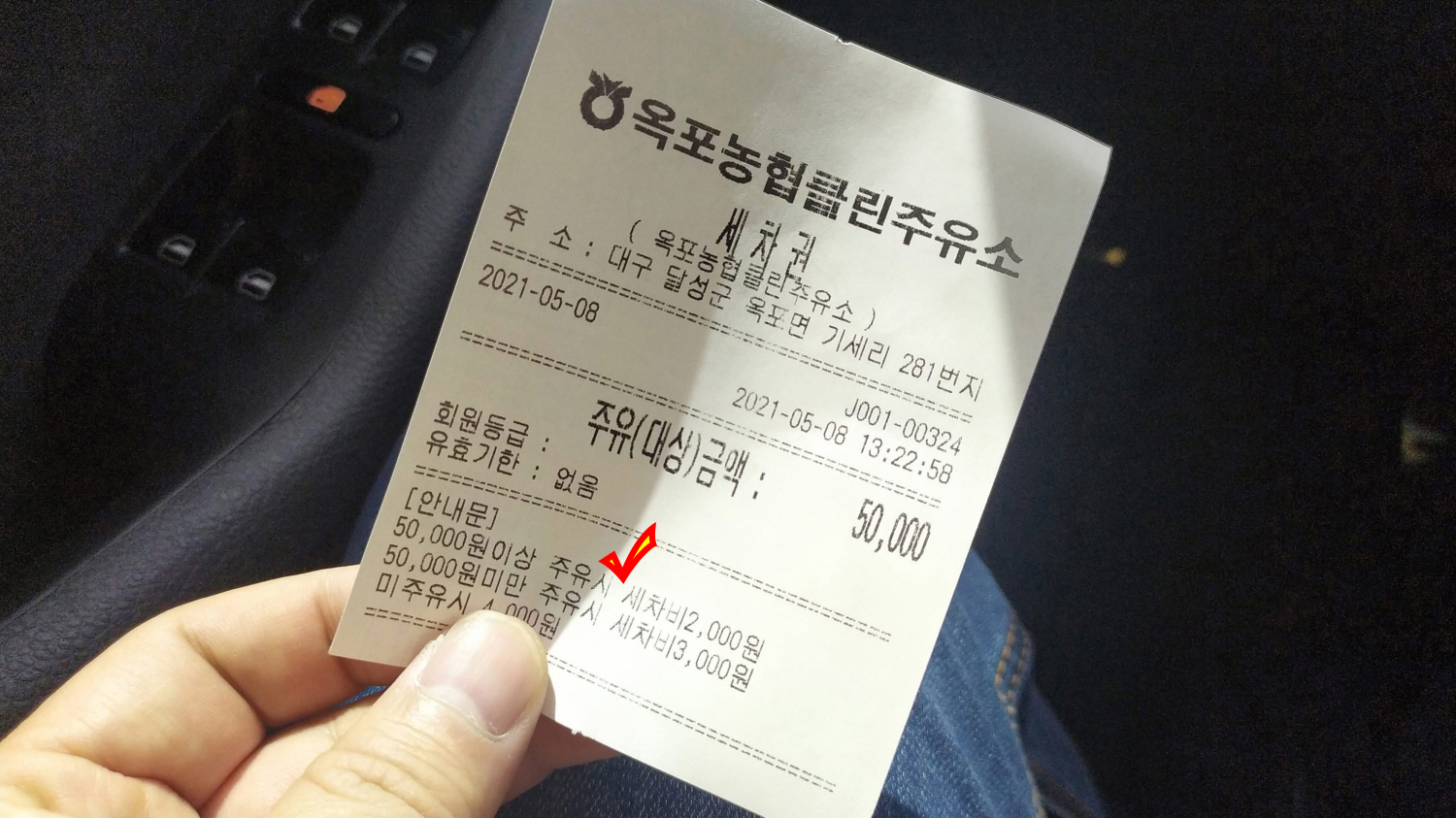 5만 원 주유하니 세차권을 준다. 공짜는 아니다. ㅠㅠ
