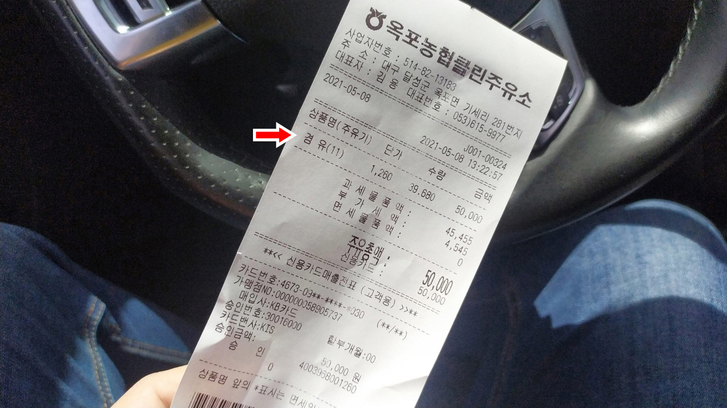 경유 가격은 위 영수증을 확인하면 되지만... 휘발유 가격은 ㅠㅠ