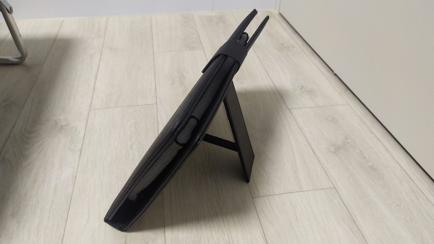 아래의 사진처럼만 고정되어 있다면 장시간 사용하여도 별 문제는 없지만 고정 고리가 생각보다 하드 하여 태블릿의 버튼 고장이나 도색 변형은 살짝 염려되기도 합니다.
