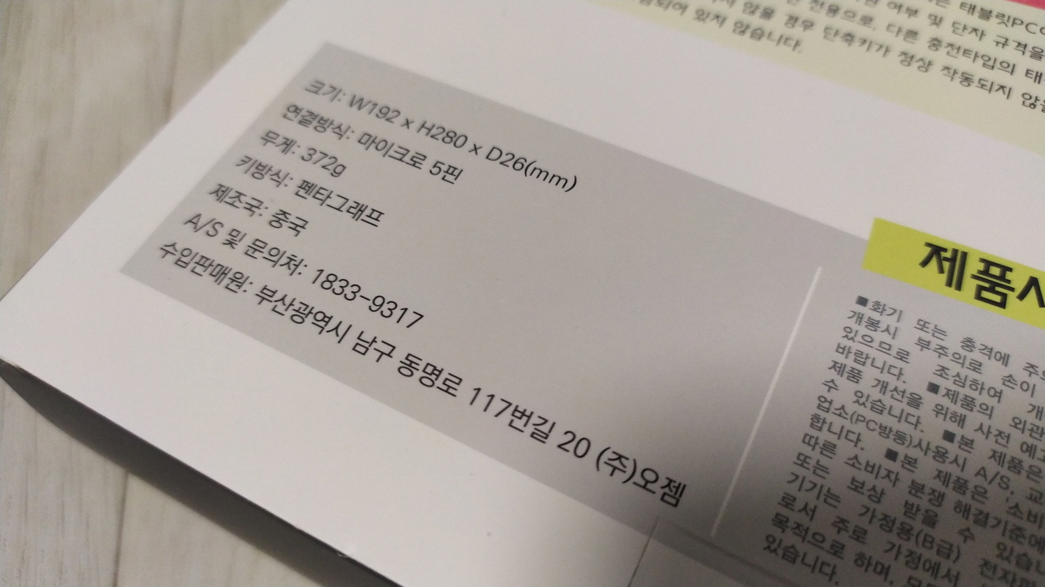 박스 후면이며, 별도의 설명서를 대신하고 있습니다.