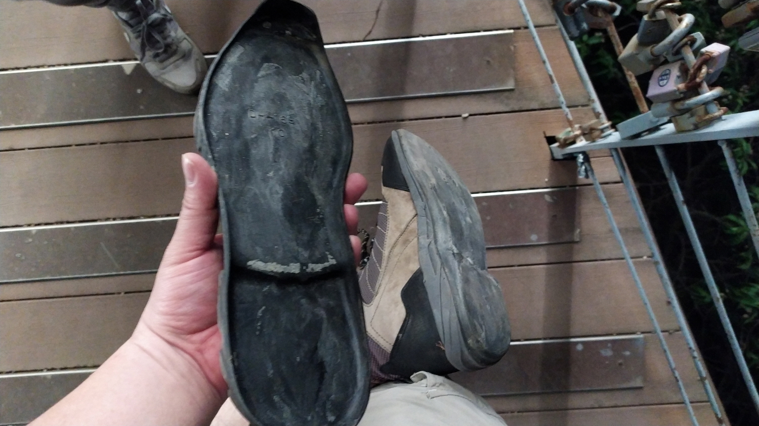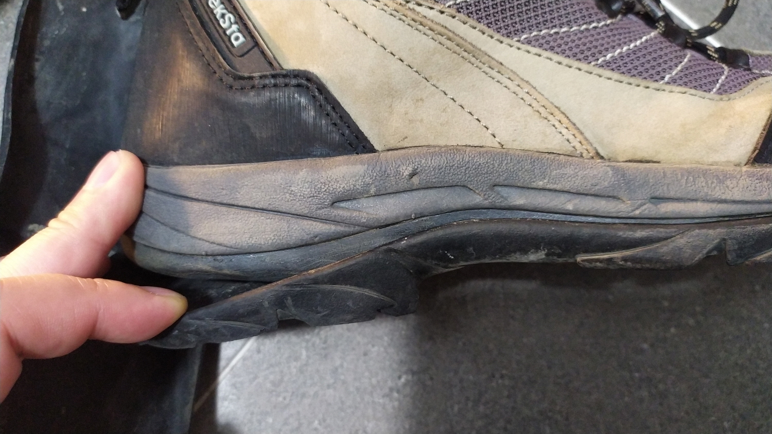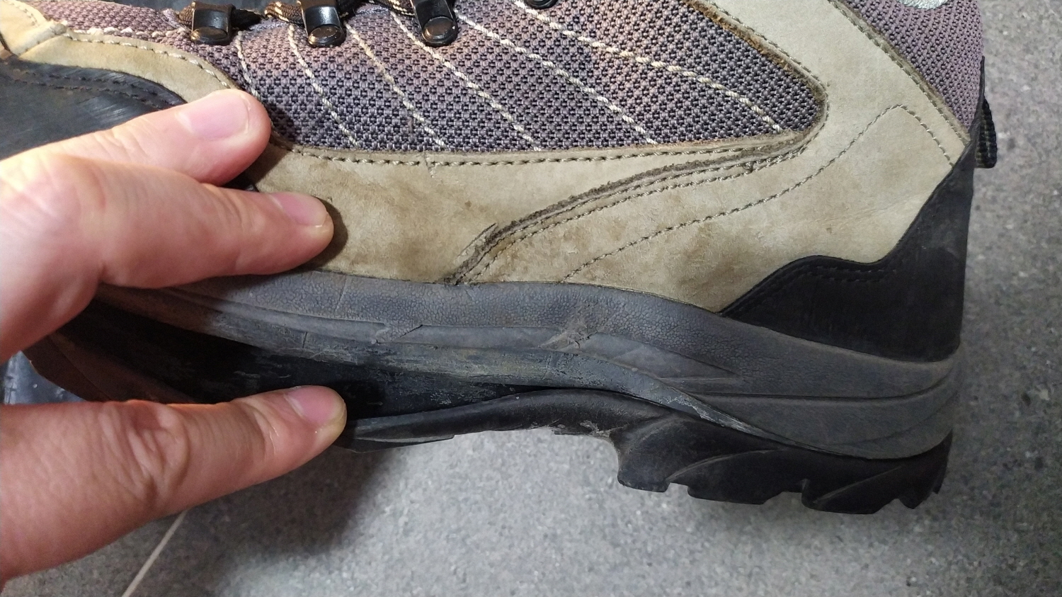 상태를 보니 박음질이 되어 있는 것이 아니라 본드 접착으로 마감이 되어 있는 듯하다. 원래 제조 시부터 이런 방법으로 등산화 제각을 하는 모양이다. 잠깐 검색을 해보니 트랙스타 등산화 밑창 교체, 창갈이 수선의 글들이 보인다.