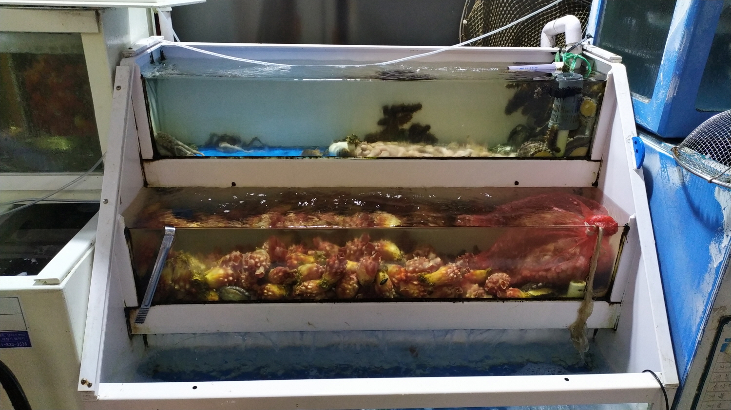 이시가리, 능성어, 돔, 산 낙지, 산오징어, 오징어순대 가격은 시세이다.