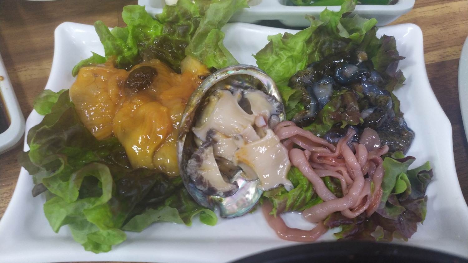 모둠회가 나왔다. 부위는 잘 모르지만 쫀득쫀득하고 끝 맛은 단맛까지 난다. 누차 이 블로그에서 말하지만 필자는 회를 별로 좋아하지 않는다. 하지만 회맛을 살짝 느끼고 회를 왜? 즐기는지 알 수 있는 느낌을 받았다.