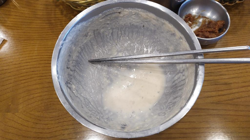 국수를 모두 건져먹고 남은 콩국물을 비워본다.