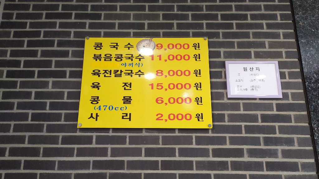 대부분의 손님들이 콩국수를 드시니 다른 메뉴의 가격은 별로 중요해 보이지 않는다. 혹 다음에 방문한다면 육전 칼국수는 한번 먹어보고 싶다는 생각이 든다.
