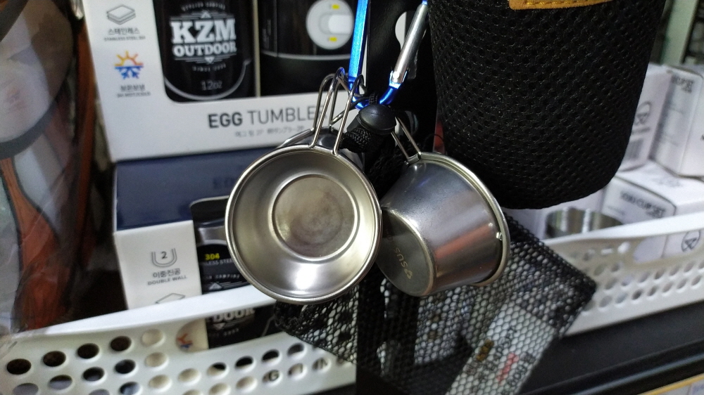 배낭에 하나쯤 달려있어야 백패킹 좀 한다고 하겠죠~ 스테인렌스 소주잔입니다.