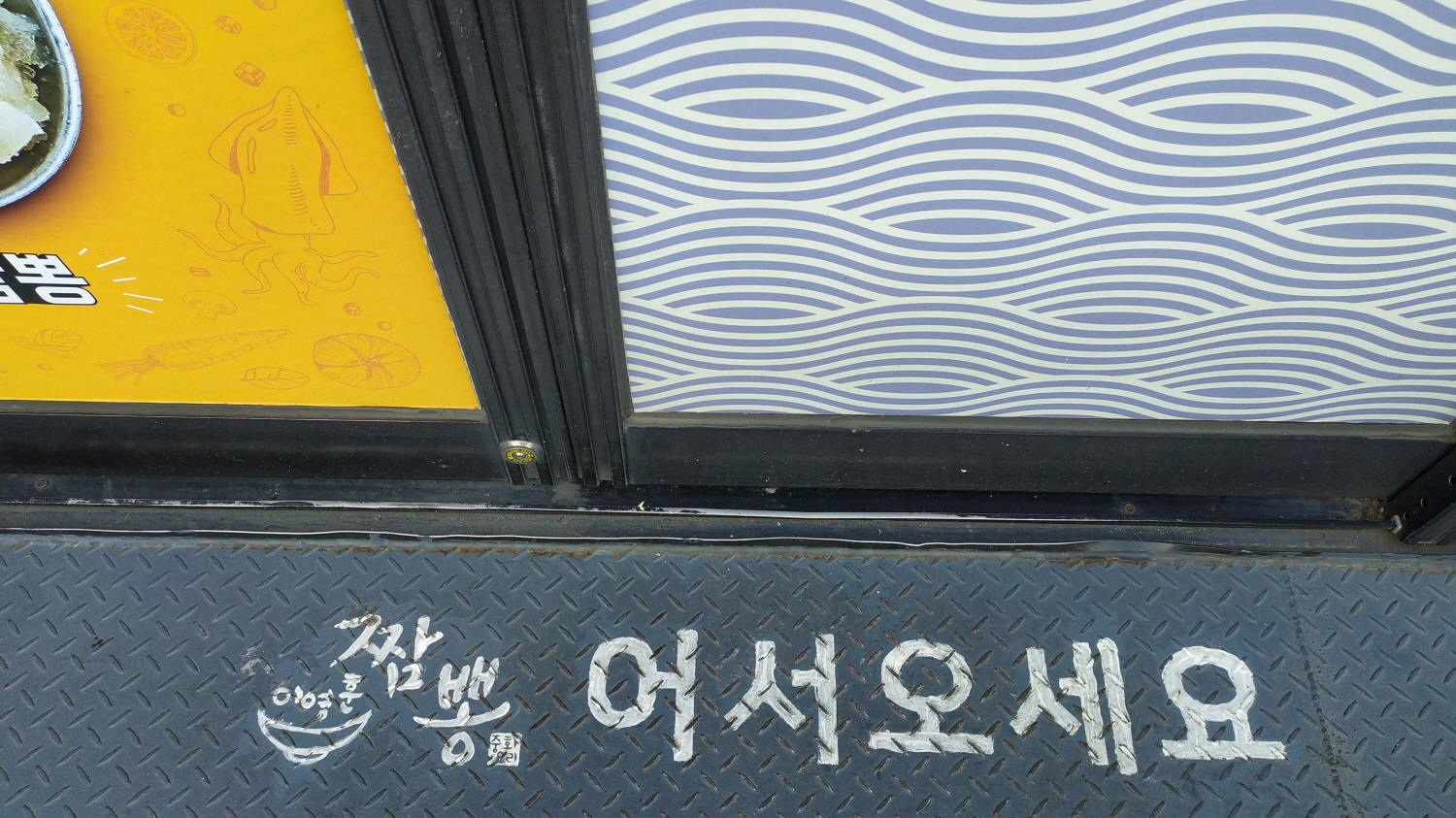 입구 바닥에 프린팅되어 있는 인사말이 아주 인상적입니다. 단순하지만 주인장의 반가운 인사를 듣는 듯한 느낌이 들었습니다.