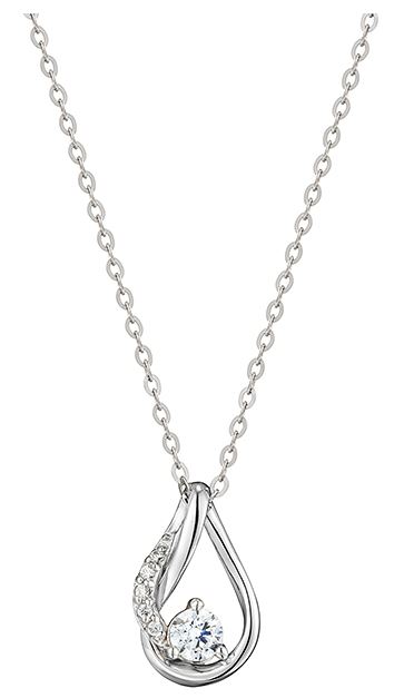 물방울 쉐입 중앙에 0.1ct 화이트 다이아몬드와 사이드 라인을 따라 화이트 큐빅을 세팅한 14K 다이아몬드 목걸이입니다.