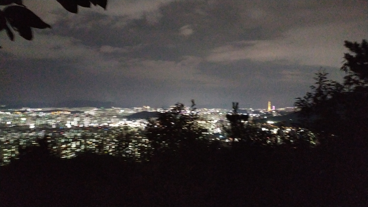 대곡지구 야경을 보면서 살짝 오른쪽으로 돌려보면 저 멀리 대구타워까지 눈에 들어옵니다. 높이로 볼 때 앞산 전망대보단 낮아 보이네요.