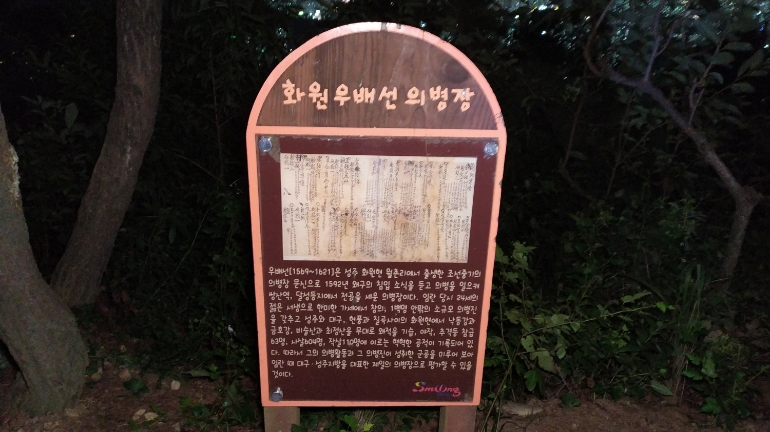 화원 우배선 의병장에 대한 안내 글이 있는데... 한 번쯤 읽어보면 좋겠네요. 왜적을 무려 800명을 사살한 공적이 있다고 합니다. 참고로 대구. 성주 지방을 대표하는 제일의 의병장으로 평가할 수 있는 분이라고 합니다.