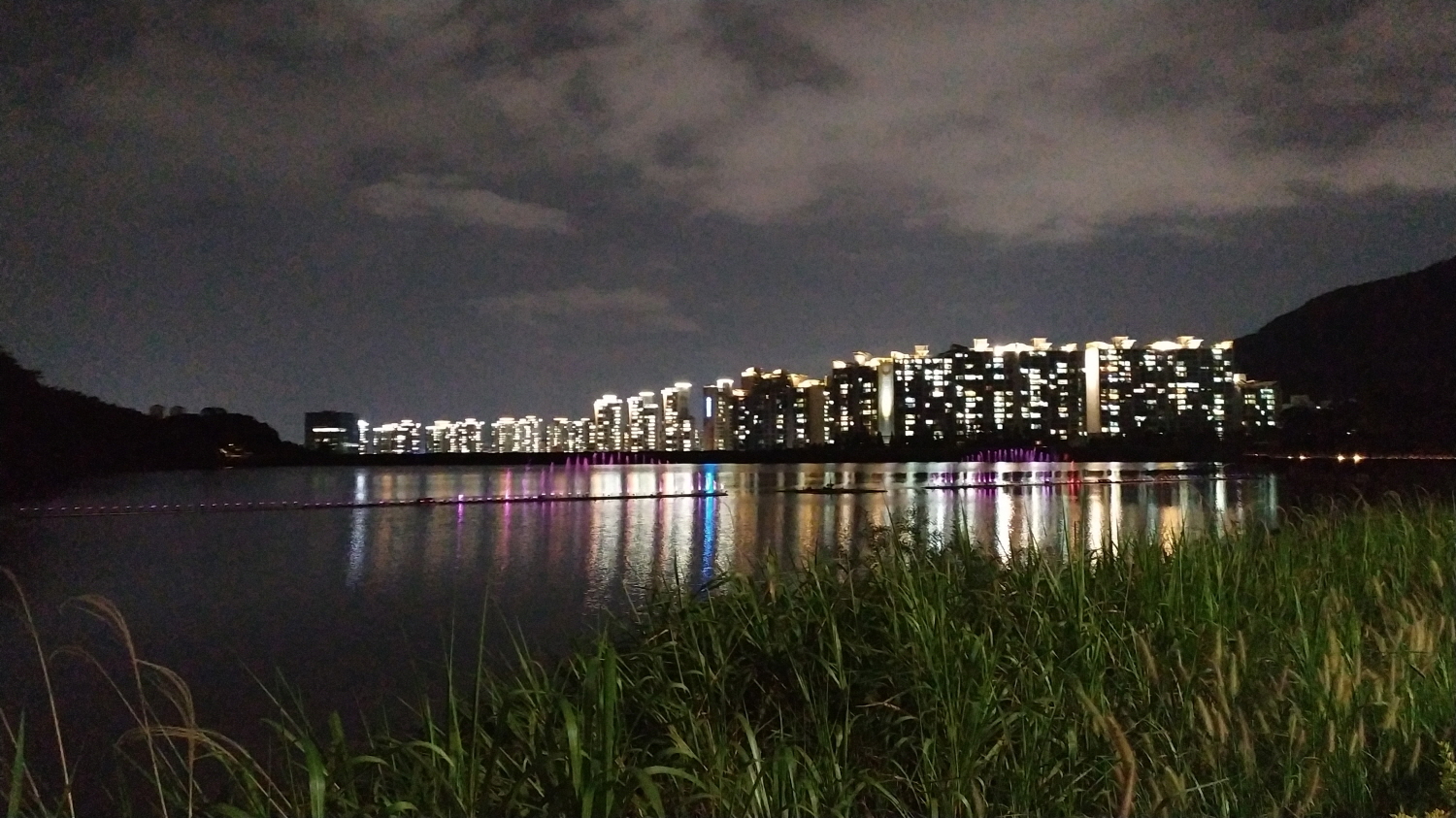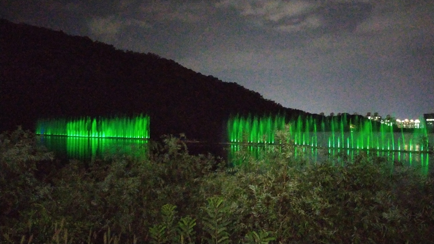 야경이 끝내주는 월광수변공원 모습입니다. 최근 많이 방문했는데... 오늘은 분수쇼까지하고 있네요. 아마도 대구에서 가장 큰 규모의 분수쇼가 아닐까? 생각됩니다. 그리고 멀리 보이는 불빛의 아파트가 바로 롯데캐슬 레이크입니다. 주차장에서 저곳까지 걸어가서 왼쪽에 살짝 보이는 산으로 올라가야 합니다.