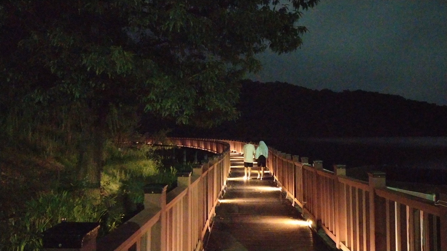 월광수변공원 주차장에서 약 10~15분 걸어서 오니 말한 대로 도원지 둑길이 나타납니다. 이곳까지 오는 길은 도원지 산책로가 조성되어 있어 연인이나 데이트로 아주 인기가 많은 길이니 이 길 역시 꼭~ 한번 걸어보시길 추천합니다. 참고로 낮보단 야간에 예쁜 조명을 감상하면서 걸어보시는 걸 추천드립니다.