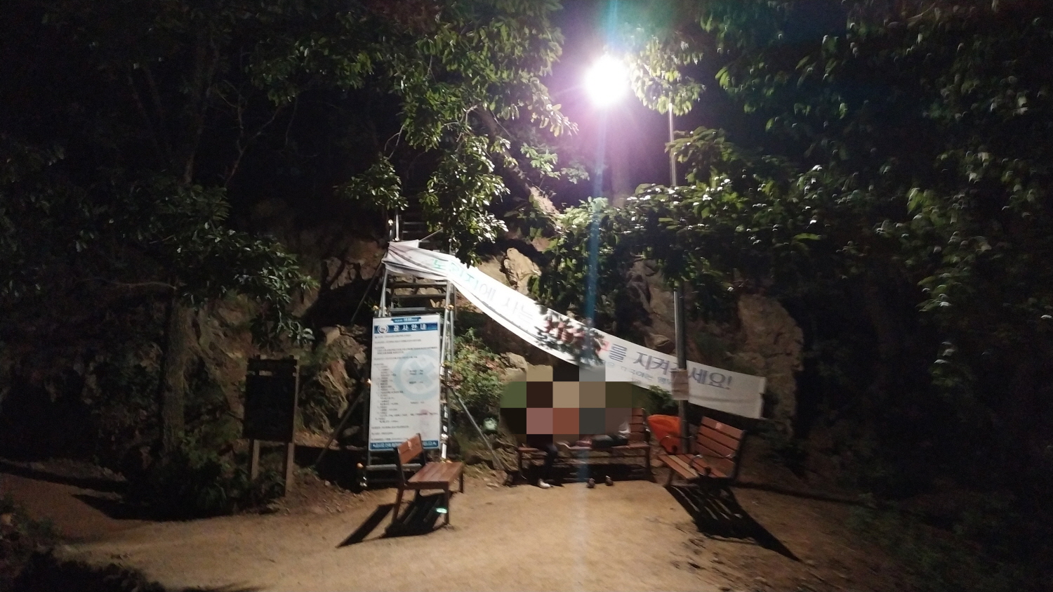 처음 쉼터를 지나 계속 산행을 해봅니다. 그리 높지 않은 산임에도 불빛이 없으니 너무 어둡지만 공기 하나만큼은 정말 좋고 코로나로 항상 마스크를 착오하는 요즘 야간산행 시에는 마스크를 벗을 수 있으니 이 보다 좋을 순 없습니다.