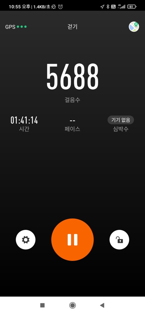 총 1시간 41분 17초 (휴식 시간 포함임), 4.12km 걷고, 걸음수는 5688, 289칼로리 소모했습니다.