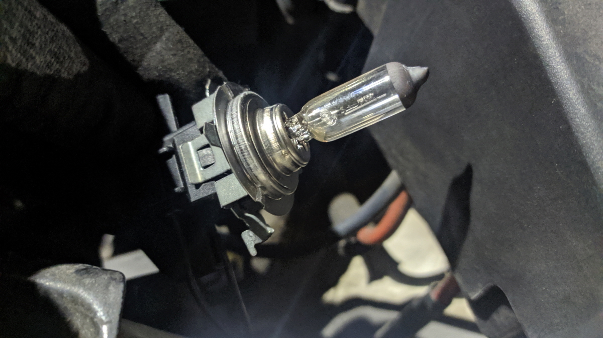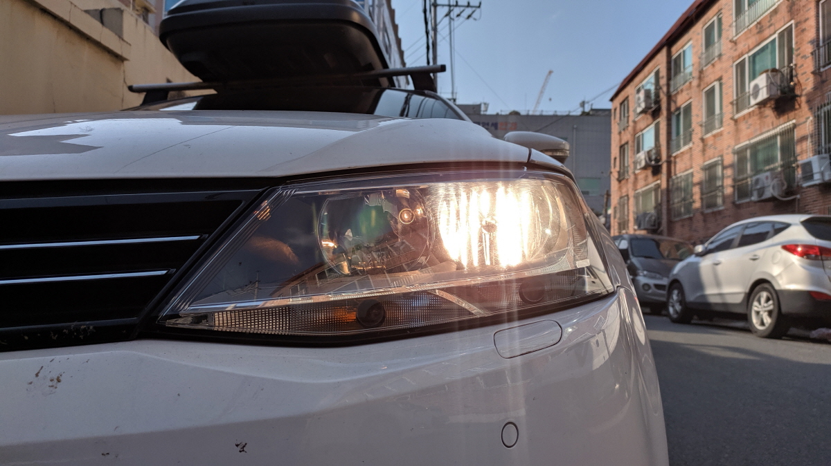 아래의 사진은 필자의 차량이며 운전석 전조등이 사망한 상태이다. 이유는 필자도 모른다. 운전하다 보니 조금 어두운 감이 있어 내려서 보니 라이트가 죽어있었다.