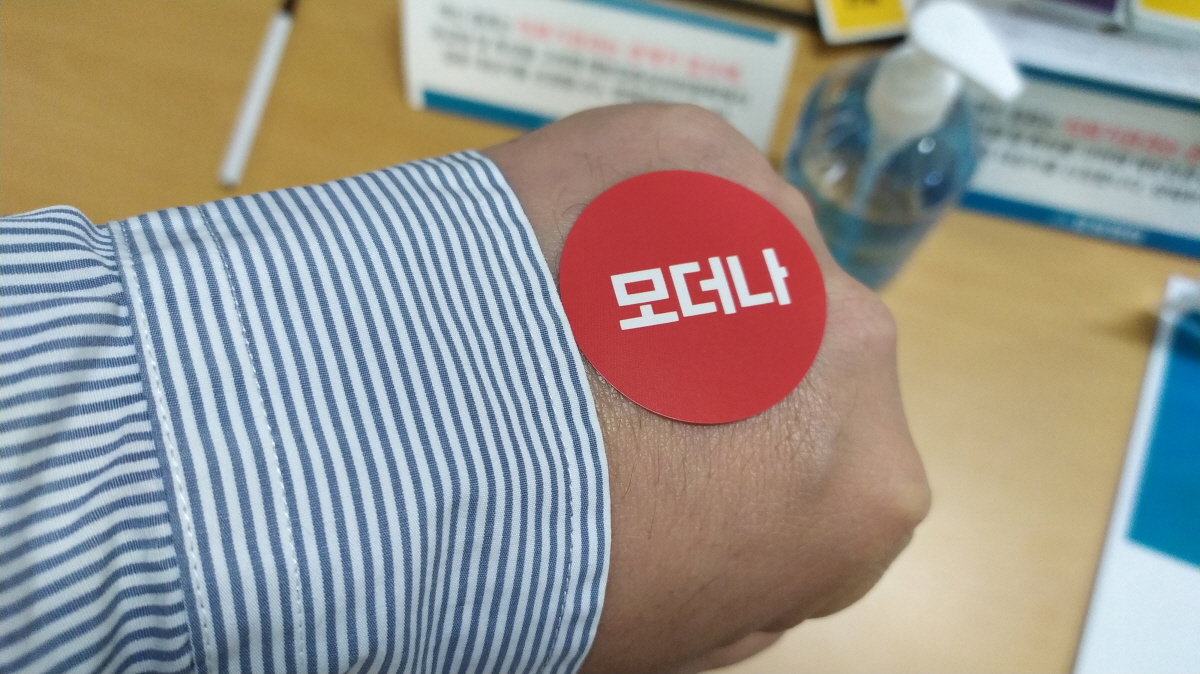 간단하게 개인정보를 기재하고 받은 모더나 스티커를 손등에 붙혀준다.