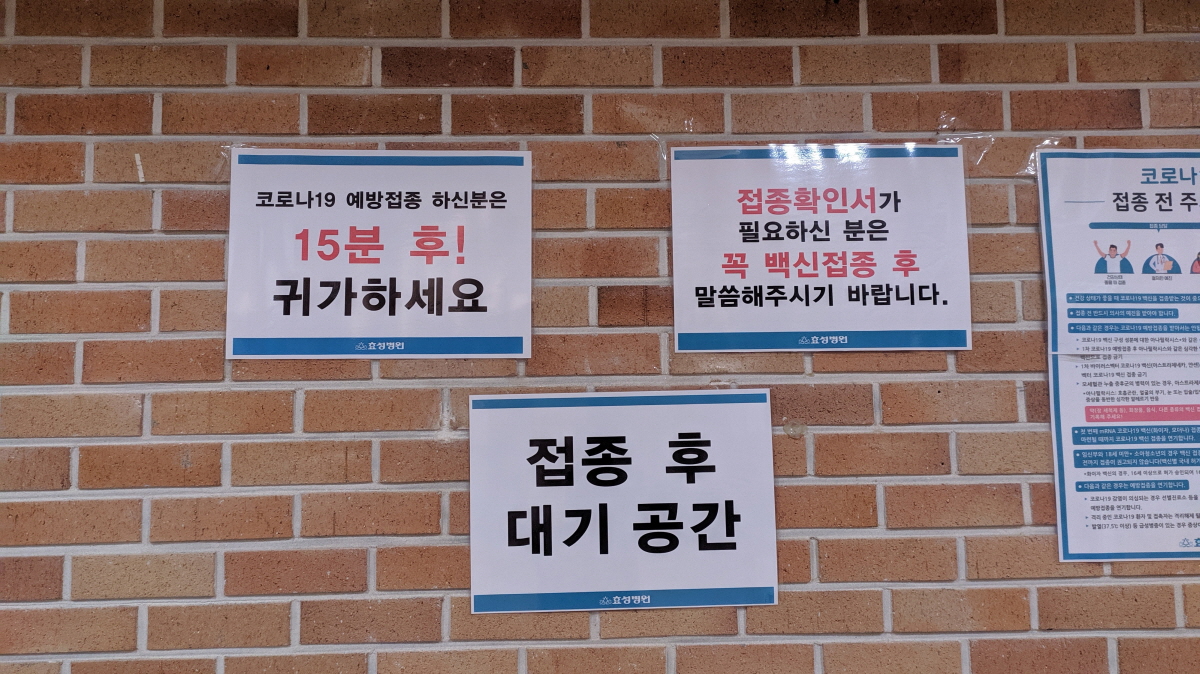 1차 접종 후에는 30분이었는데... 2차는 15분 후 귀가하라고 한다.