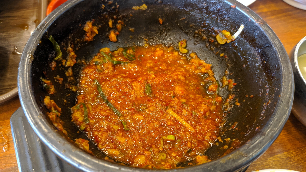 깔끔하게 먹었다고 생각했는데... 양념이 많이 남았다. 공깃밥을 더 달라고 해서 비벼먹고 싶었지만 나오는 배를 생각하면서 다음을 기약한다.