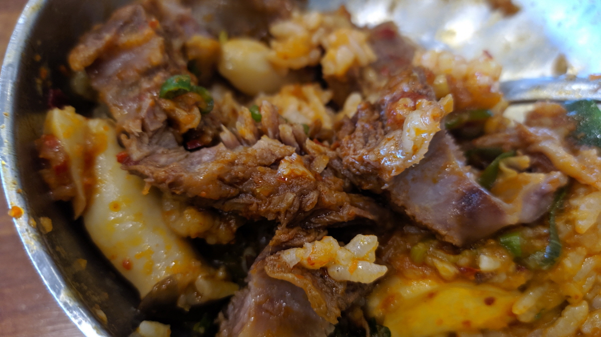 밑반찬 세팅 후 그리 길지 않은 시간이 지나고 메인 메뉴인 뚝배기 갈비찜이 나왔다. 사진으로 보기에도 아주 얼큰하게 매운맛이 느껴지지 않는가? 하지만 생각과는 다른 매콤함이다. 초등학생 아이들도 충분히 먹을 수 있을 만큼의 매운맛 정도이니 아이들과 함께 방문해도 좋겠다.