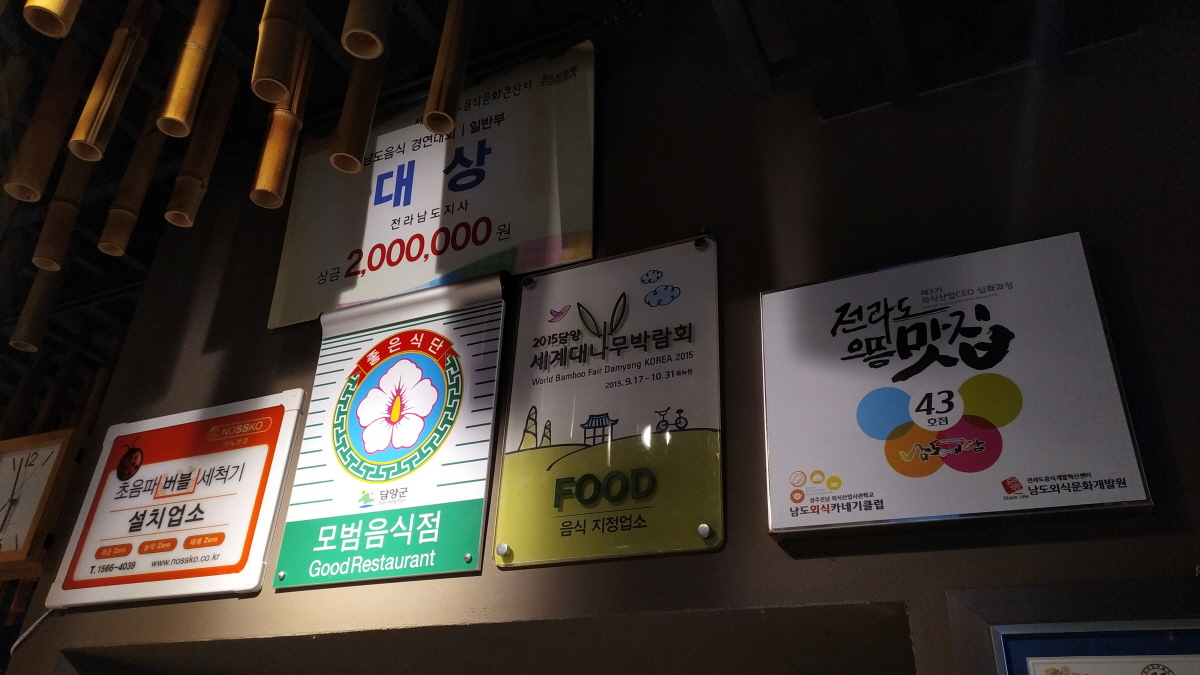 맛집이라 그런지 엄청난 상장과 상패들이 식당 입구에 걸려있다.
