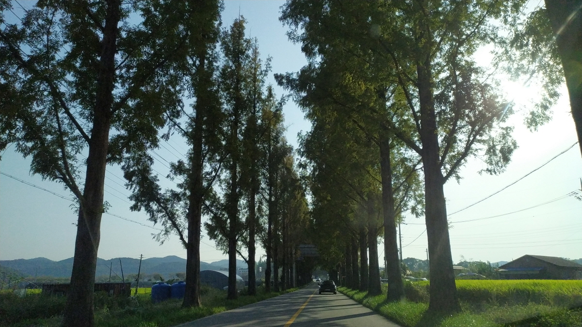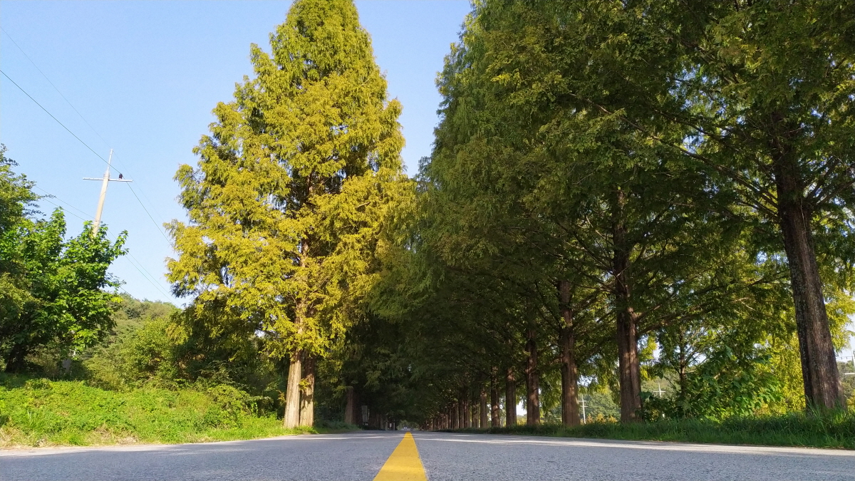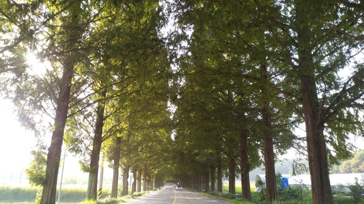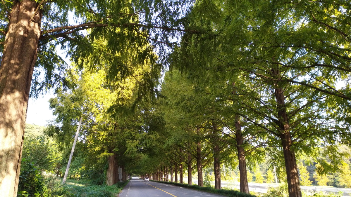 시간이 흐른탓도 있지만 예전과는 다르게 길이 더 길어진듯하다. 약 10분 이상 메타세쿼이아 가로수길을 차로 달려본다. 왜? 이곳에서 드라마나 영화 촬영을 많이 했는지 달려보면 충분히 알 수 있을 것이다. 신기하게도 차도라 그런지 자전거 대여점은 없다. 개인적 생각이지만 이런 곳은 차가 아닌 자전거나 사람만 다니면 좋겠다는 생각이 든다. 너무 아름답다.