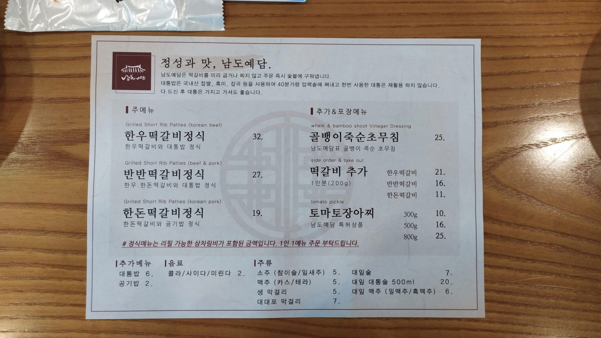 한우/돼지고기 모두 불향은 강했지만 떡갈비 자체의 육즙은 전혀 없고 퍽퍽한 맛이 강했다. 함께한 아이들도 그렇데 맛있다고 하진 않는다. 가격대가 있는 음식들이고 나름 유명한 식당임에도 아이들 입맛과는 조금 다른 평가가 내려지니 순간 당혹스러웠다.