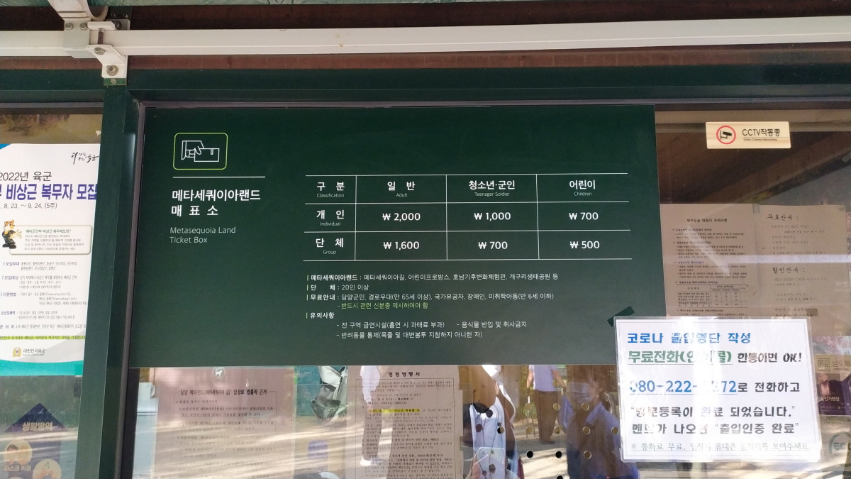 담양 메타세쿼이아 랜드 입장료는 개인 2,000원, 어린이 700원이다. 2,000원에 대한민국 100선 아름다운 길을 걸을 수 있다면 충분하고도 남는 장사가 아닐까?