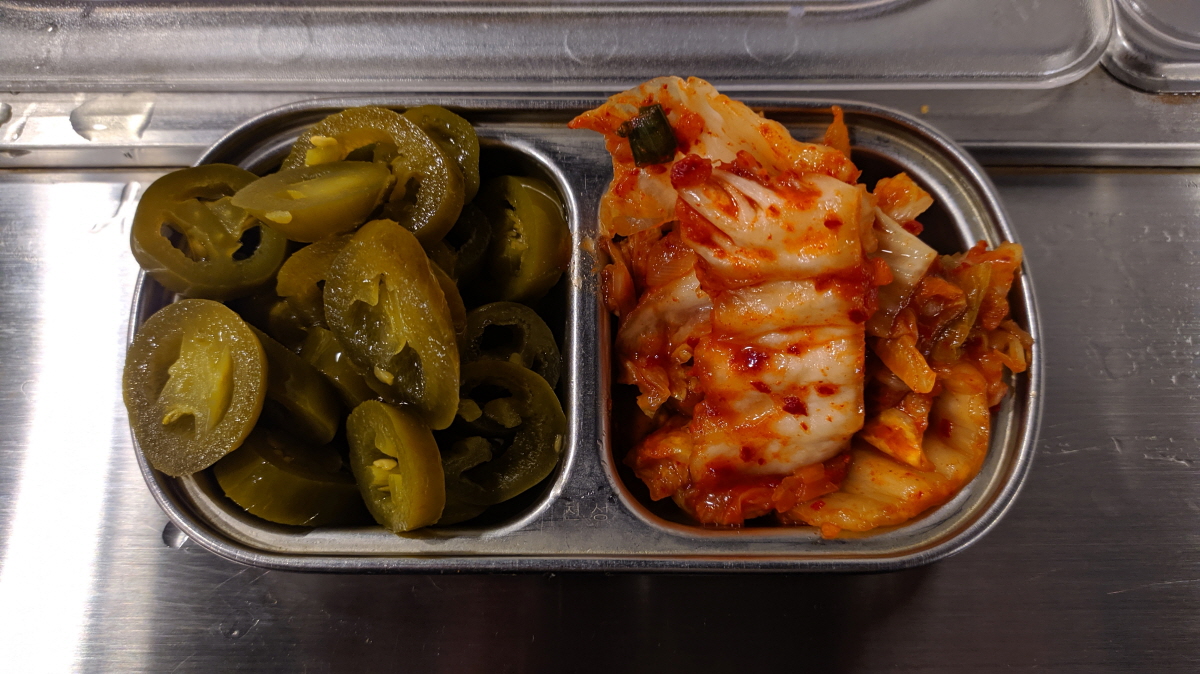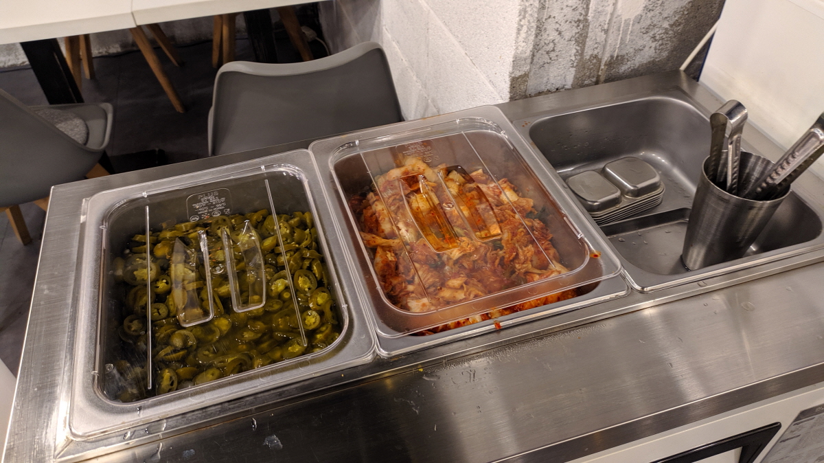 모든 게 셀프이다. 말한 대로 계산 후부터는 필요한 음료뿐 아니라 김치와 피클까지 모두 셀프로 가져가 먹어야 한다. 그렇게고 금액인 싼 가격은 아니다.